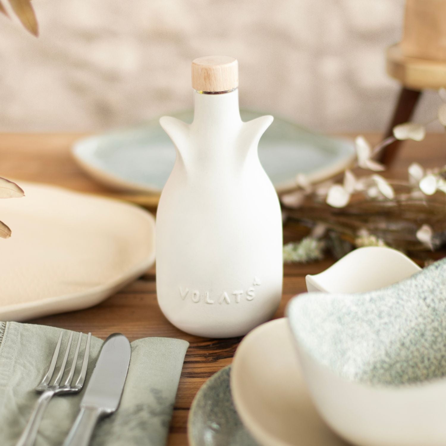 Aceite de oliva virgen extra premium en vasijas de cerámica de diseño exclusivo, reutilizables y coleccionables.